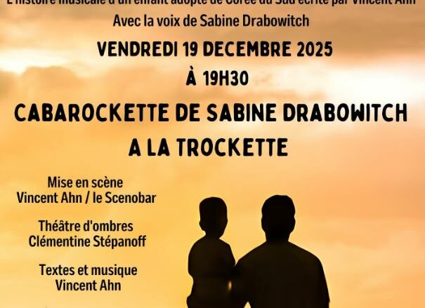 A l’initiative de Sabine Drabowitch qui organise une fois par mois des soirées Cabarockette dans le lieu alternatif La Trockette à Paris 11ème, nous avons eu la chance d’assister à une représentation de la pièce musicale de Vincent Ahn sur l’adoption. Ce spectacle s’appuie sur ses chansons, données au piano, un théâtre d’ombres imaginé et mené par Clémentine Stépanoff, et LIRE LA SUITE…