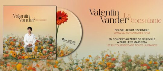 Le troisième album solo de Valentin Vander « La consolante » est sorti ce 10 octobre 2025, sous le label Contrepied productions. Il est doux et mélodieux, dix titres et 33 minutes de tendresse. L’artiste est un sentimental dans le fond. Il laisse tomber son ironie et son mordant des Goguettes pour nous bercer de sa musique folk et partageuse. « On doit rester unis » dit-il, pour se tenir les coudes dans notre société de plus en plus hostile et inquiétante.